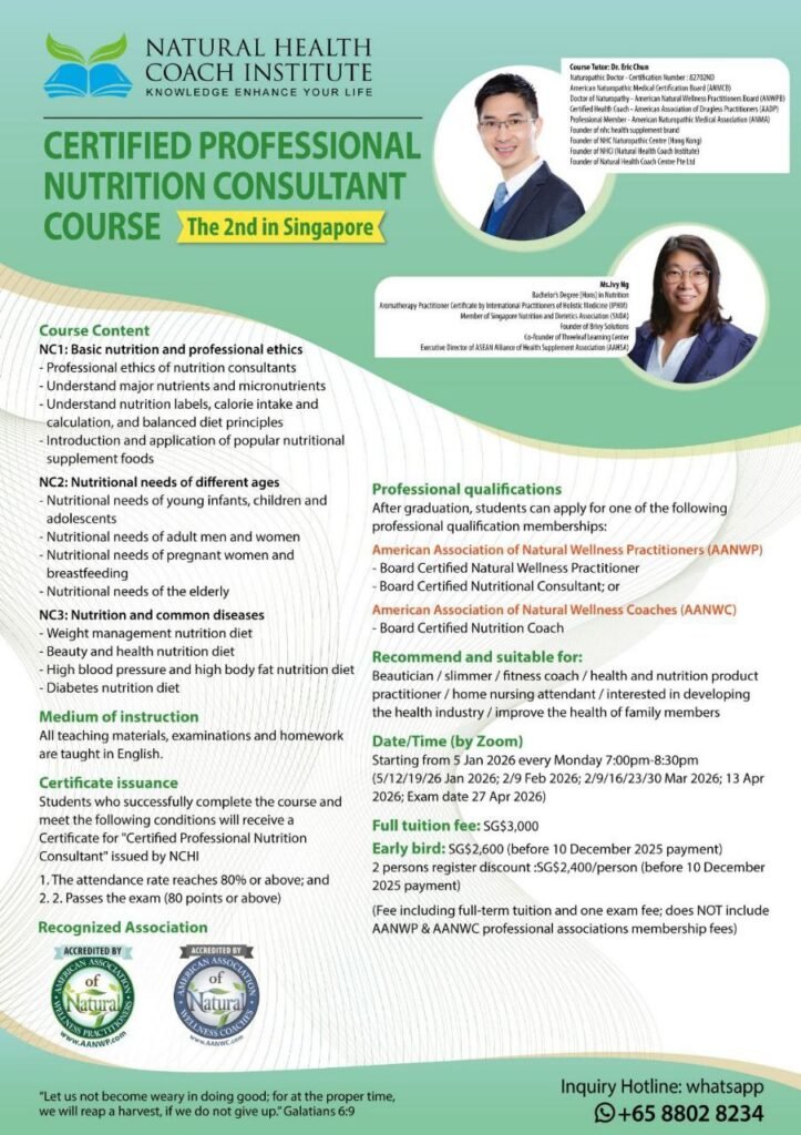Join the Certified Professional Nutrition Consultant Course by NHCI — an internationally recognized program that equips you with professional knowledge in nutrition, health, and wellness. Conducted live online via Zoom, this course is perfect for anyone passionate about natural health and nutrition.